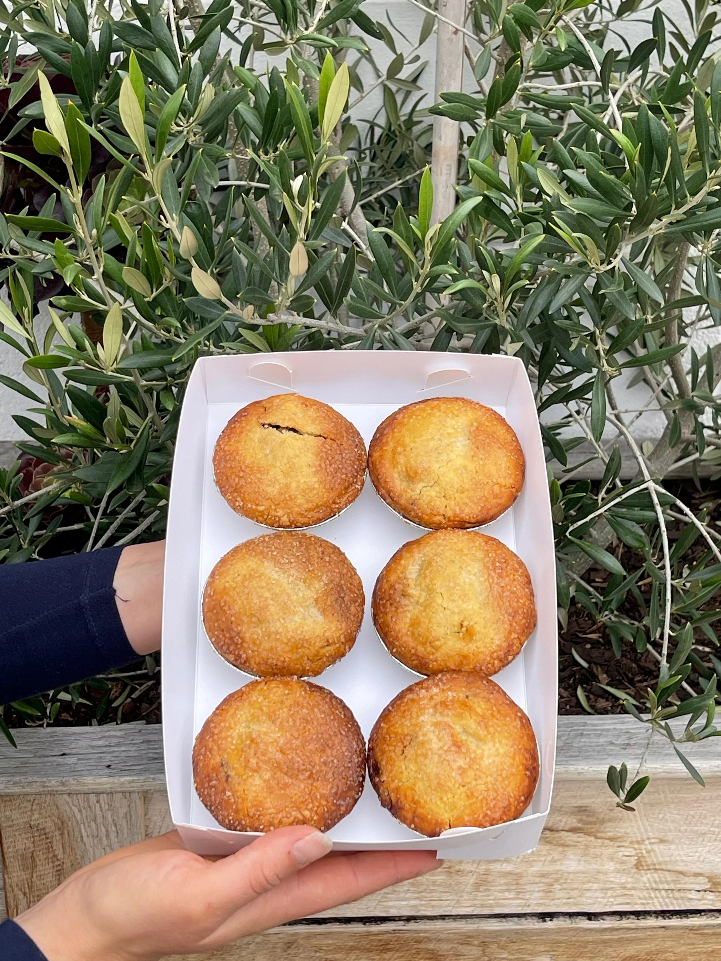 Tabletop grapes dried fruit, citrus peel, Alvie cider, apple & almonds, baked daily in a rich shortcrust pastry